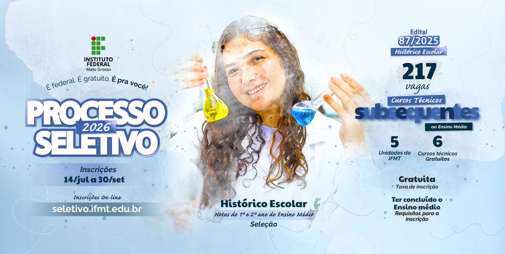 IFMT abre 217 vagas para cursos técnicos subsequentes com ingresso em 2026