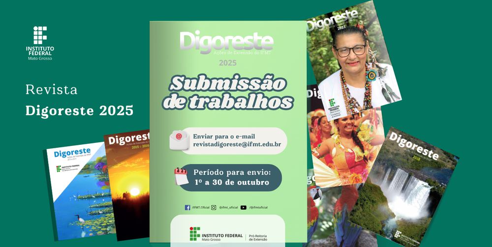 A Pró-Reitoria de Extensão (Proex) abre prazo para submissão de trabalhos para publicação no oitavo volume da Revista Digoreste. O recebimento dos resumos de Ações de Extensão do IFMT será de 01 a 30 de outubro de 2025.